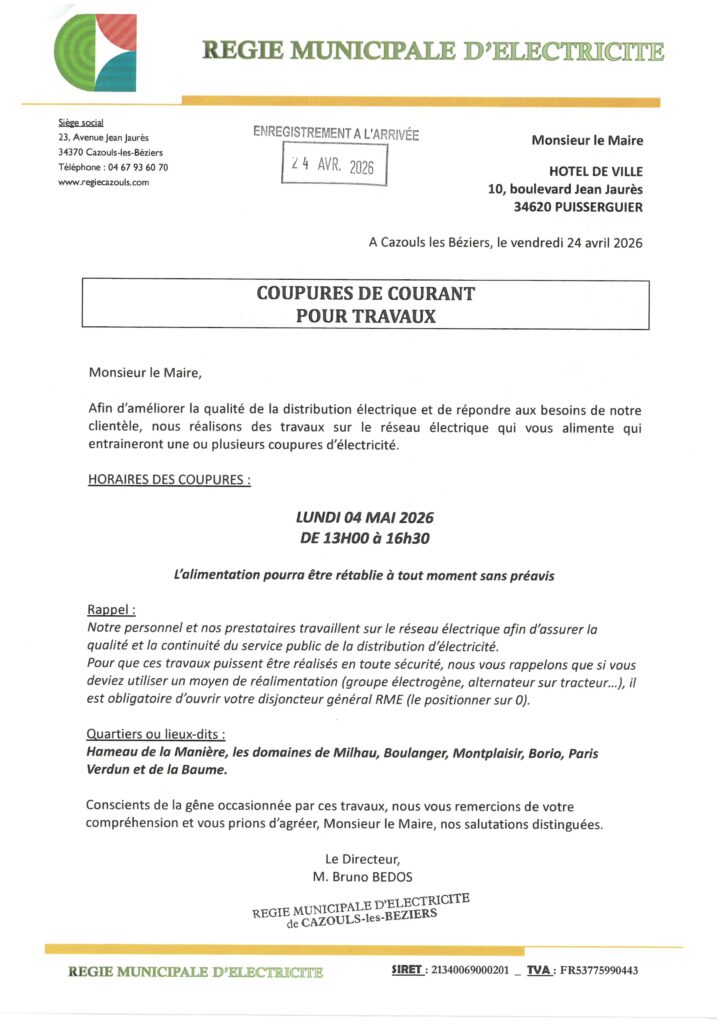 Accueil / Mairie / Coupure de courant lundi 04 mai 2026
